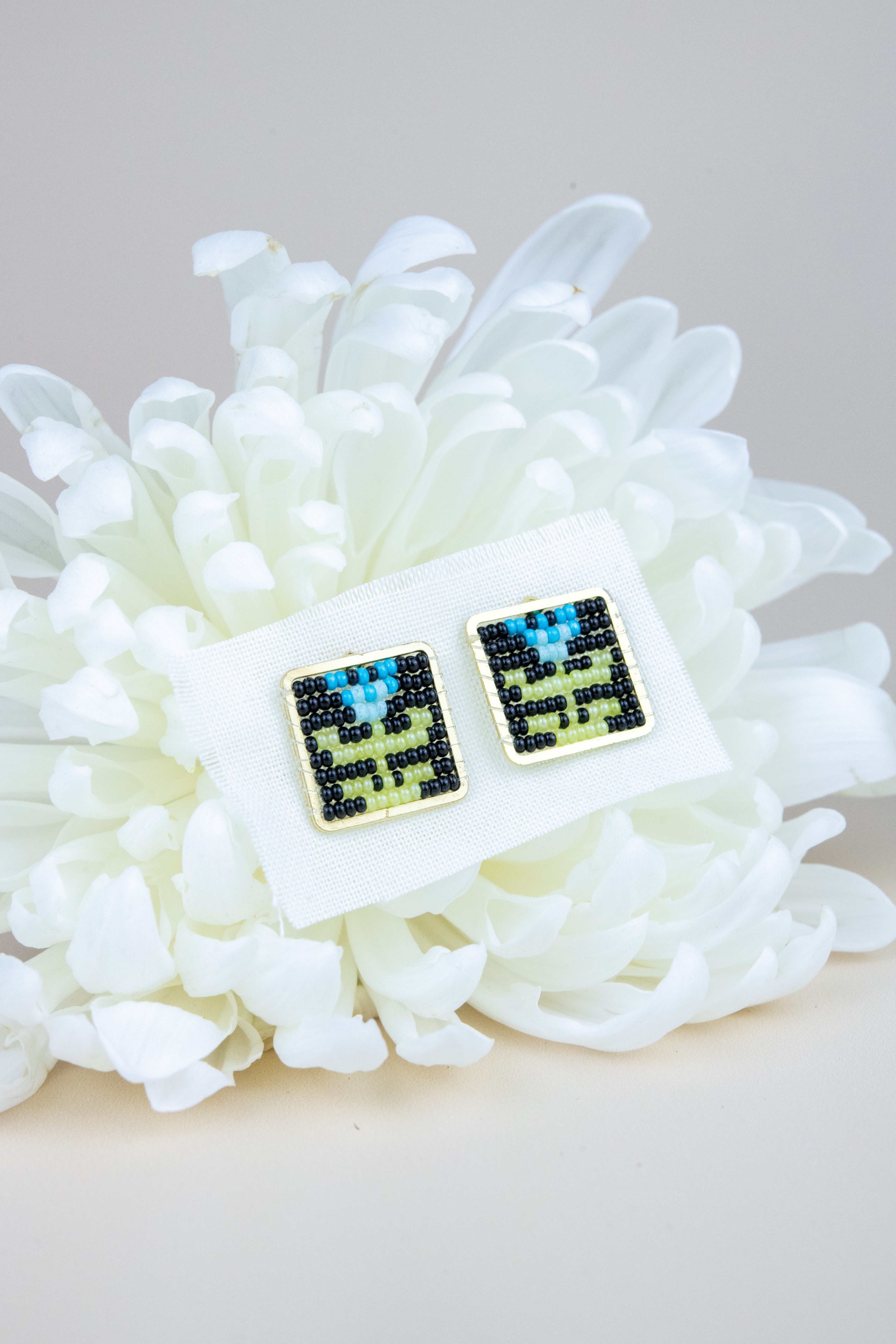 Tulip Tapestry Posts bring a touch of bright, handwoven beauty to your everyday style. Each square stud is crafted with detailed beadwork that forms a tiny blooming tulip, framed in warm gold. Lightweight and cheerful, they add a small burst of color and charm that feels effortless and uplifting.