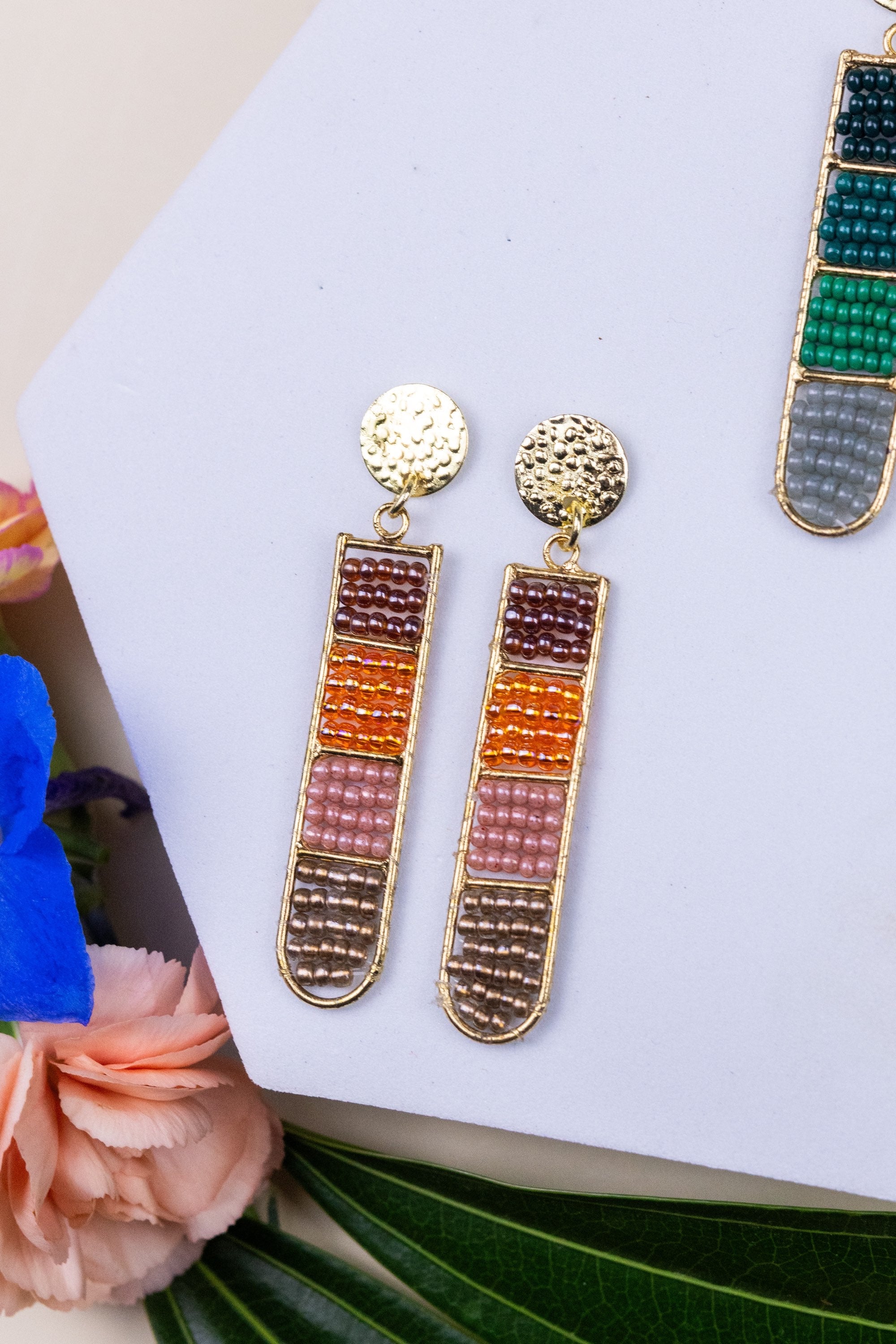 Thread has a natural memory. When not being worn, earrings should be hung or laid flat to support their intended form over time. When traveling, it is recommended to store earrings separately from other jewelry to help prevent surface contact, scratching, or snagging of the beadwork. Thoughtful storage helps maintain both shape and finish with wear.