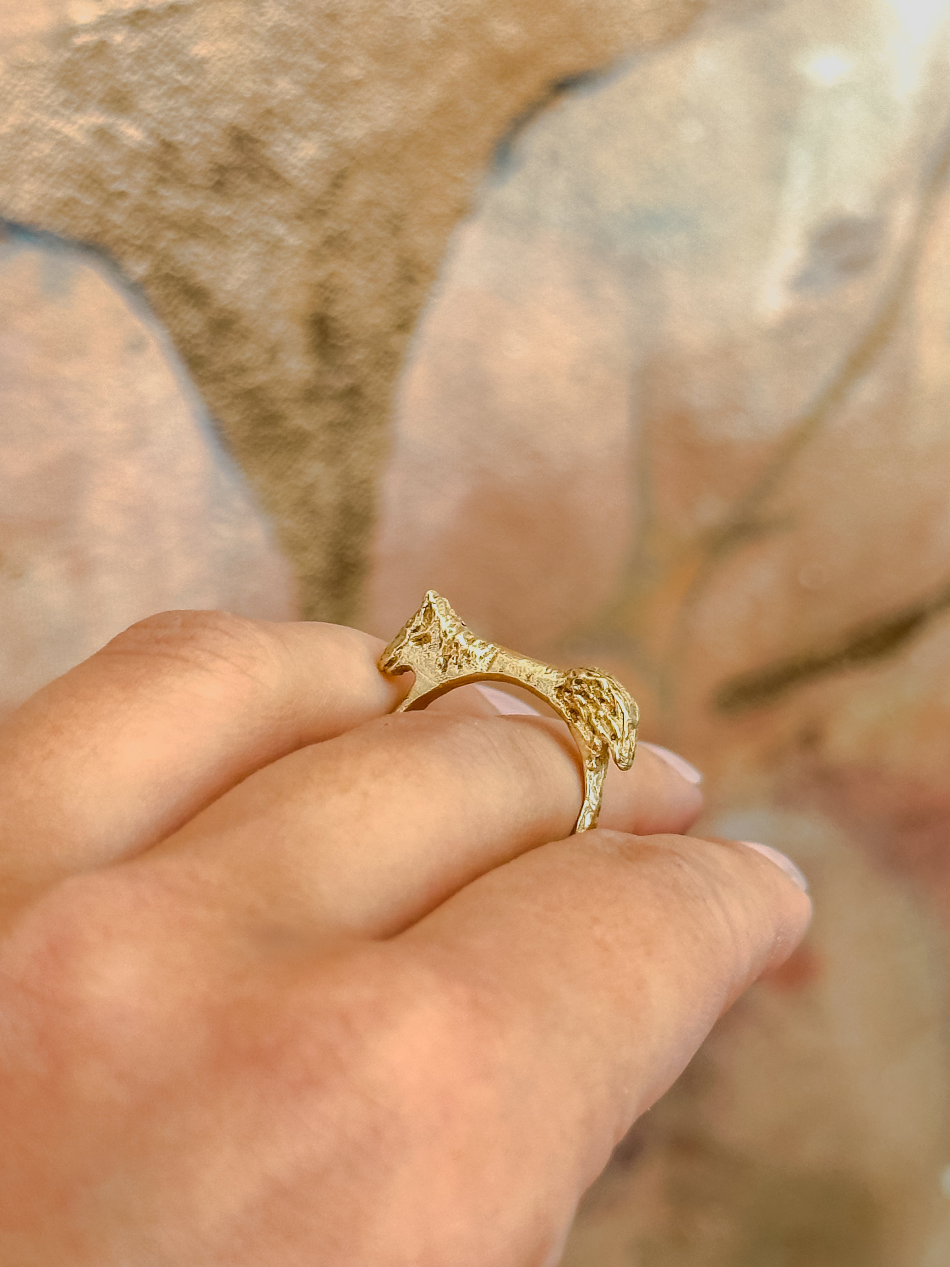 Hand-formed and cast in solid brass, this ring feels like both adornment and artifact.